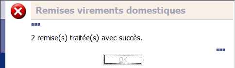 Once validated, the transfer can be directly included within a batch and formatted to be remitted to bank. At this stage, you just need to click the Process by batch option in the Validation and Process section, and to accept the remittance proposal. From now on, the transfers bear the Remitted status.