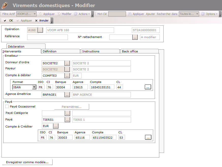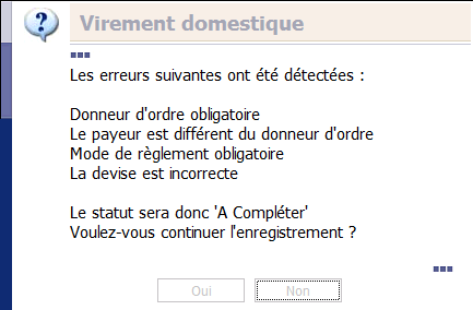When you click OK in a page such as Domestic Transfer - Change, and that your transfer is not correct, a dialog box warns you automatically.