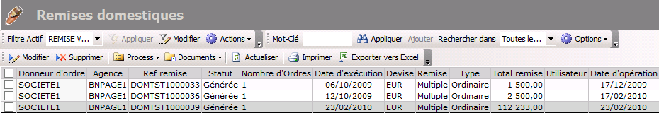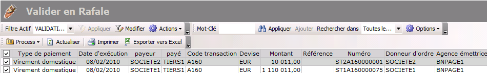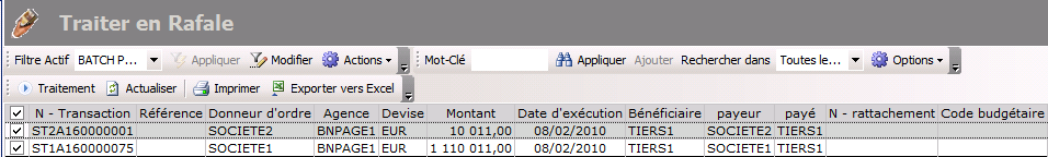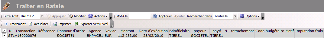 The Process by batch is displayed presenting the list of the validated transfers that meet your criteria.