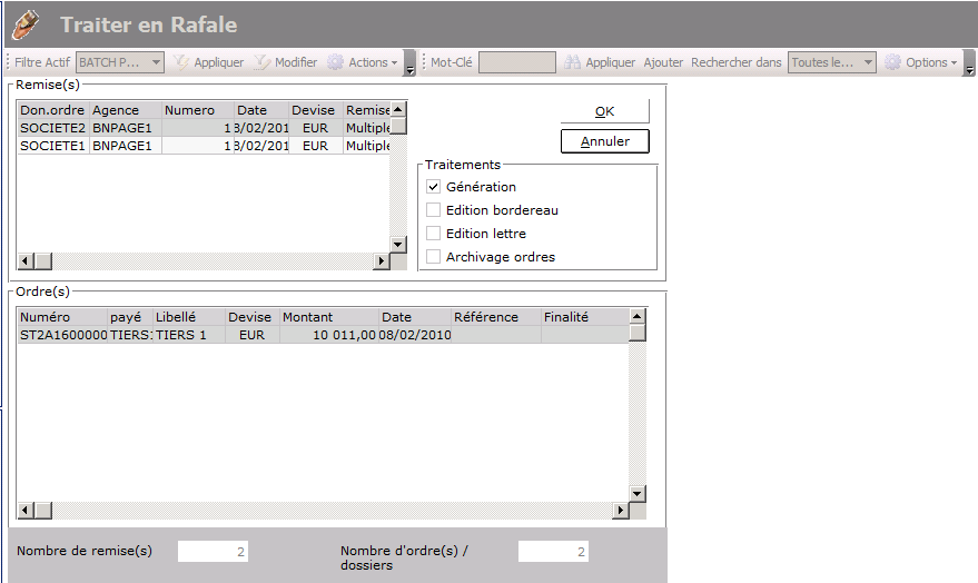 The list of selected remittances is displayed: click OK to confirm their generation. Here is the confirmation dialog box: