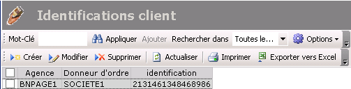 - Haga clic en Aplicar para confirmar su operación y seguir con a creación o haga clic en Aceptar para guardar la nueva identificación y volver a la lista de las identificaciones creadas.