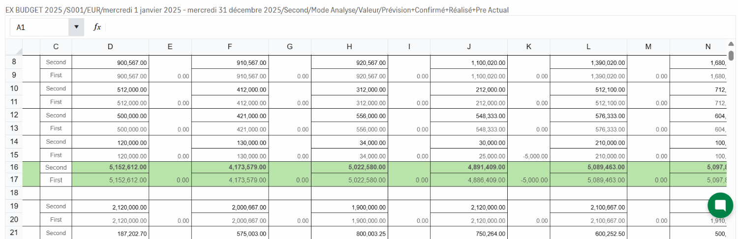 Le Mode Mixte vous permet de visualiser un exercice budgétaire avec deux types de données : le réalisé et les prévisions.