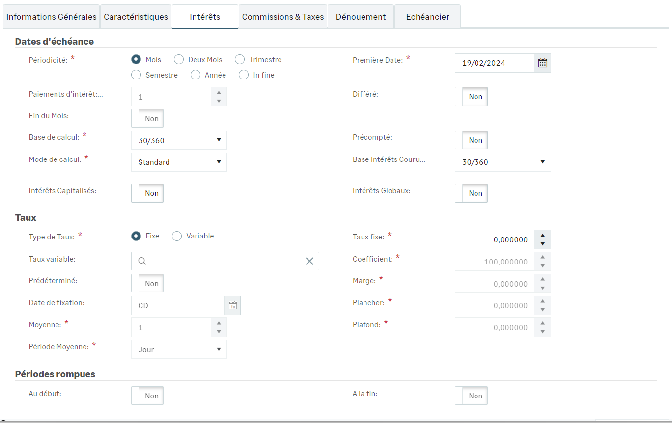 - L'option Prédéterminé ne s’applique qu’aux taux variables.