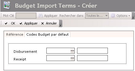 - Cliquez sur l'onglet Codes budgétaires par défaut.