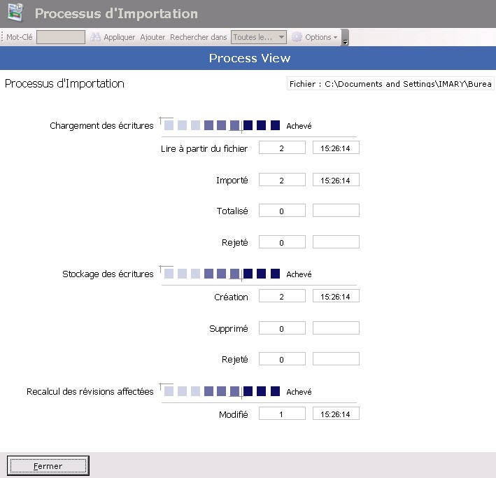 L'importation est lancée et une nouvelle page s'affiche, indiquant la progression de la tâche.