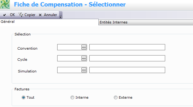 Pour créer une fiche de compensation, vous devez, dans un premier temps, choisir la convention, le cycle et la simulation à appliquer à la fiche de compensation.